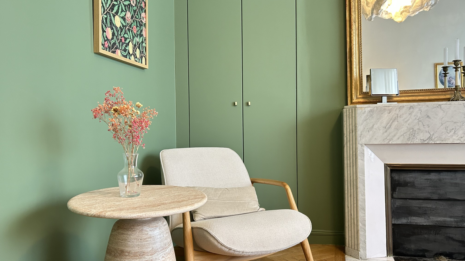 Les prestations sont à la hauteur : moulures au plafond, parquet massif et atmosphère raffinée.
